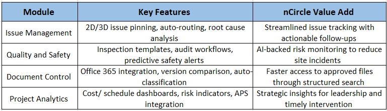 At nCircle Tech, we make this transition seamless. As an experienced Autodesk partner, we bring deep domain expertise and AI-powered implementation to accelerate adoption and maximize ROI. Our purpose-built solutions are designed to align your digital workflows with ACC’s full potential unlocking efficiencies, minimizing risks, and improving delivery outcomes across your projects.