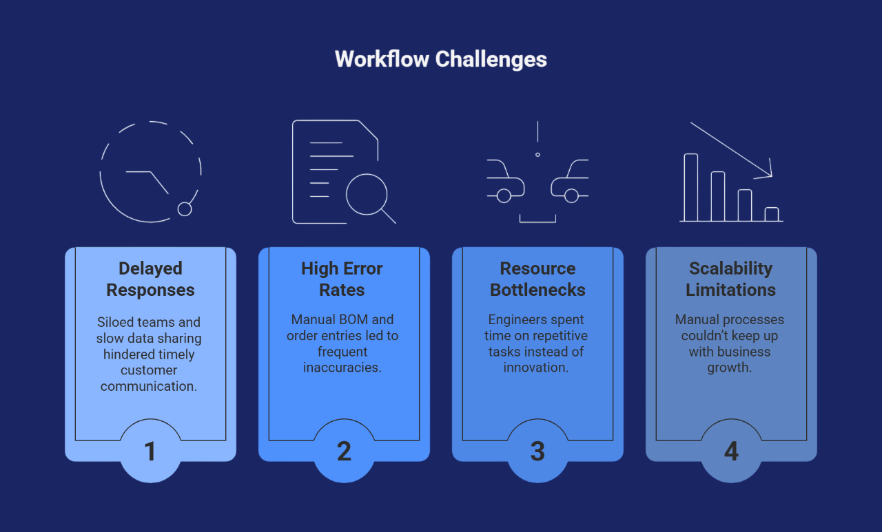 - Error-Prone Processes: Manual BOM and order data increased the risk of inaccuracies.
