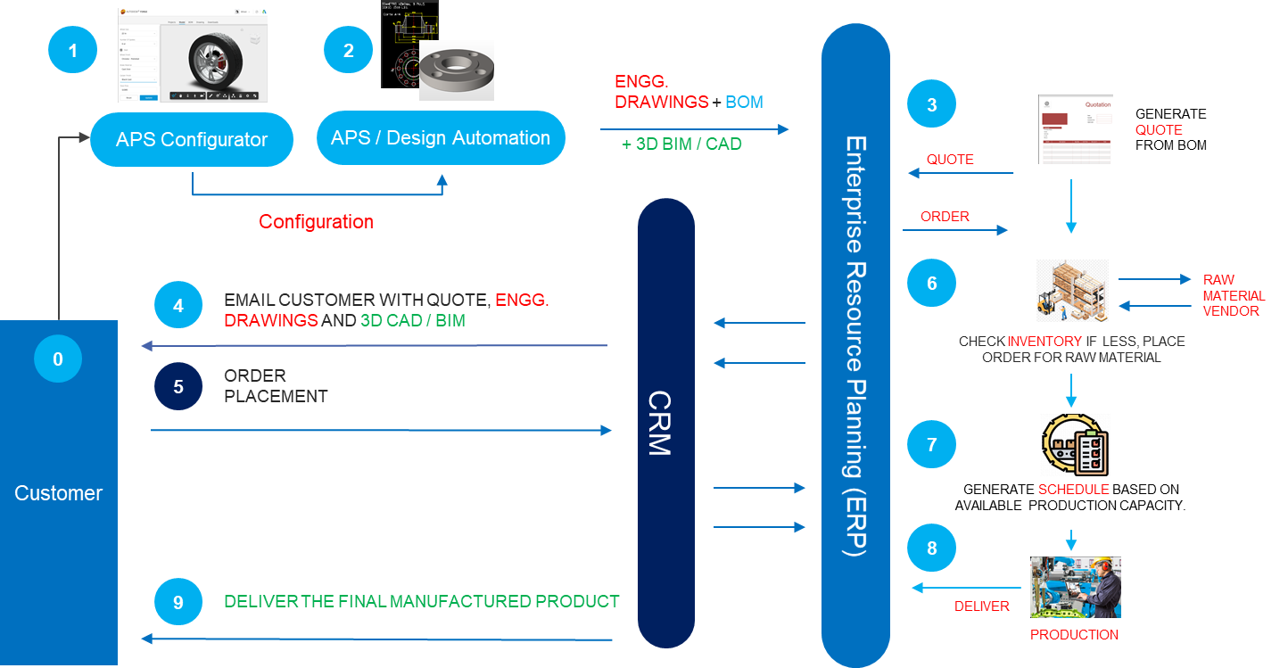 - CRM and ERP Integration for Seamless Workflow CRM and Epicor ERP system integration created a unified platform for seamless production automation and real-time visibility. Quotes, engineering drawings, and 3D CAD or BIM files were automatically generated and delivered within 15 minutes of a request, streamlining inventory management, optimizing production scheduling, and enabling faster conversions.