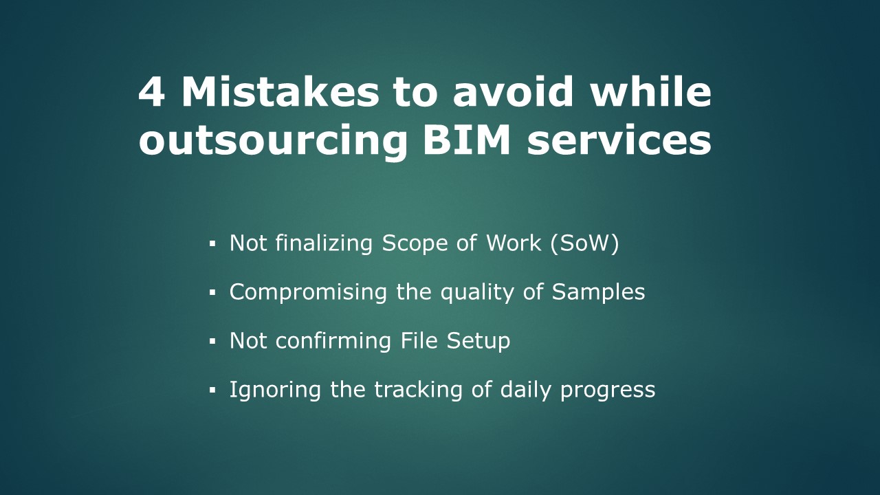 Whenever you are outsourcing, the major thing to keep in mind is that never comprise quality and time. But, you surely need to avoid these 4 mistakes while outsourcing your BIM services.
