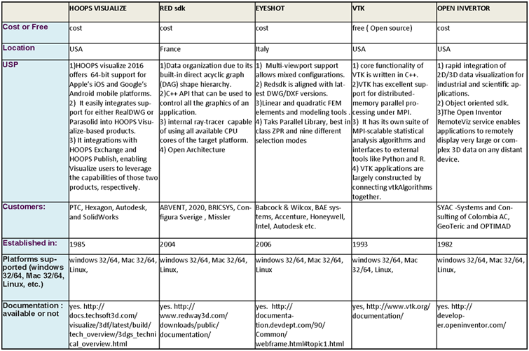 HOOPS Visualize is a graphics engine or graphics database by TechSoft 3D, a USA based company. HOOPS as a technology has been around since 1985 and was an Autodesk product till 1996. TechSoft 3D acquired HOOPS in 1996 and introduced the HOOPS Product Suite, consisting of HOOPS Visualize, HOOPS Exchange and HOOPS Publish. These SDKs for visualization have been their prime products since then. Companies like PTC, Hexagon, Autodesk, and SolidWorks use Hoops Visualize to power their applications. Its capabilities include: