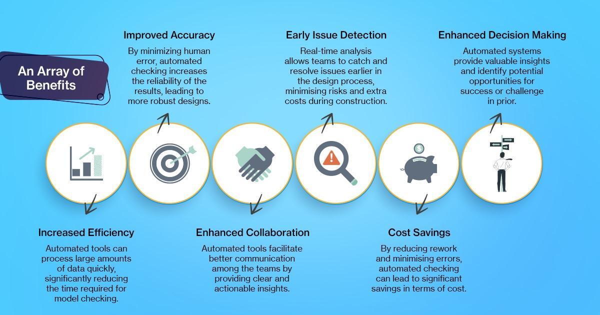 自動チェックは、先進的なアルゴリズムとソフトウェアツールを活用して、レビューのプロセスを効率化し、リアルタイムで不一致を特定することができます。エンジニア、建築家、デザイナーといった人間の専門家は、結果の解釈や情報に基づいた意思決定を行う上で依然として重要な役割を果たしますが、自動チェックは大規模で複雑なプロジェクトにはより正確で必要不可欠です。