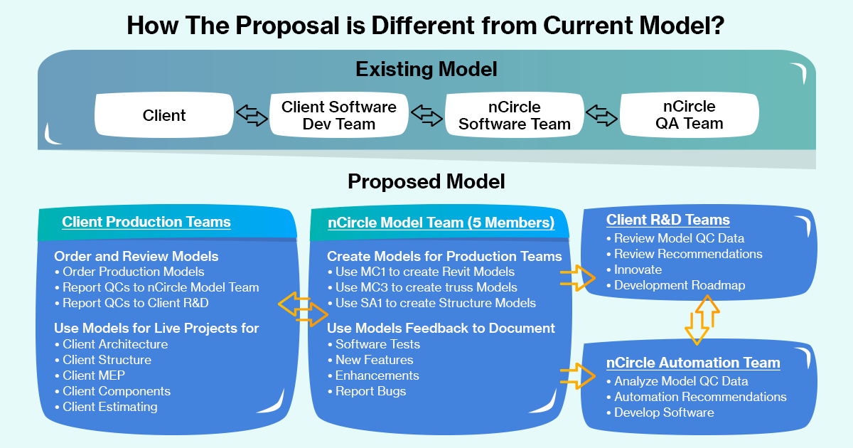 The constant back-and-forth between teams caused inefficiencies. nCircle Tech streamlined communication between BIM and software automation teams, enabling real-time collaboration. This improved workflow reduced delays, allowing the automation team to deliver faster, tailored solutions, transforming traditional BIM processes.