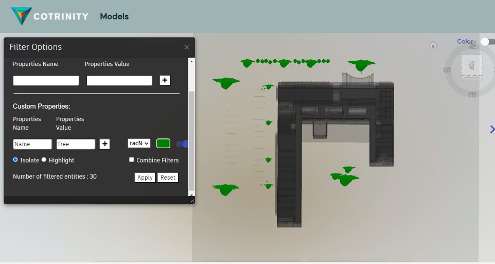 Identification of entities in a model was made easier with the help of a filter colouring approach that highlights the chosen type of element in a distinct colour.