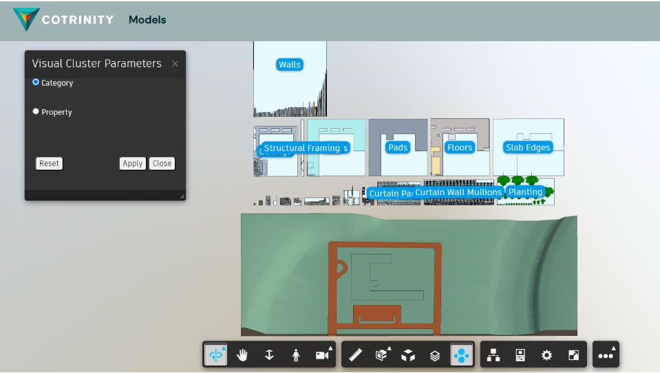 The visual clustering parameter solution proposed helped in differentiating several elements and categories of a 3D model. It resolved the issue and made visualisation much clearer and simpler to understand.