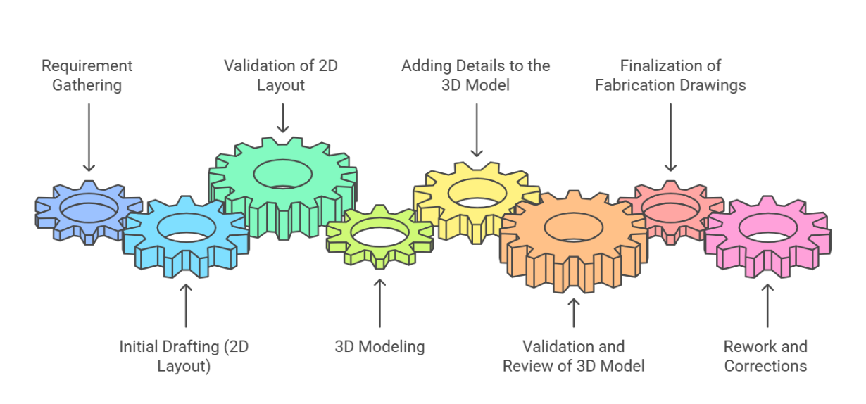 - 3Dモデリング: 2D設計を3Dモデルに手動変換。ミスが発生し、頻繁な手直しが必要。