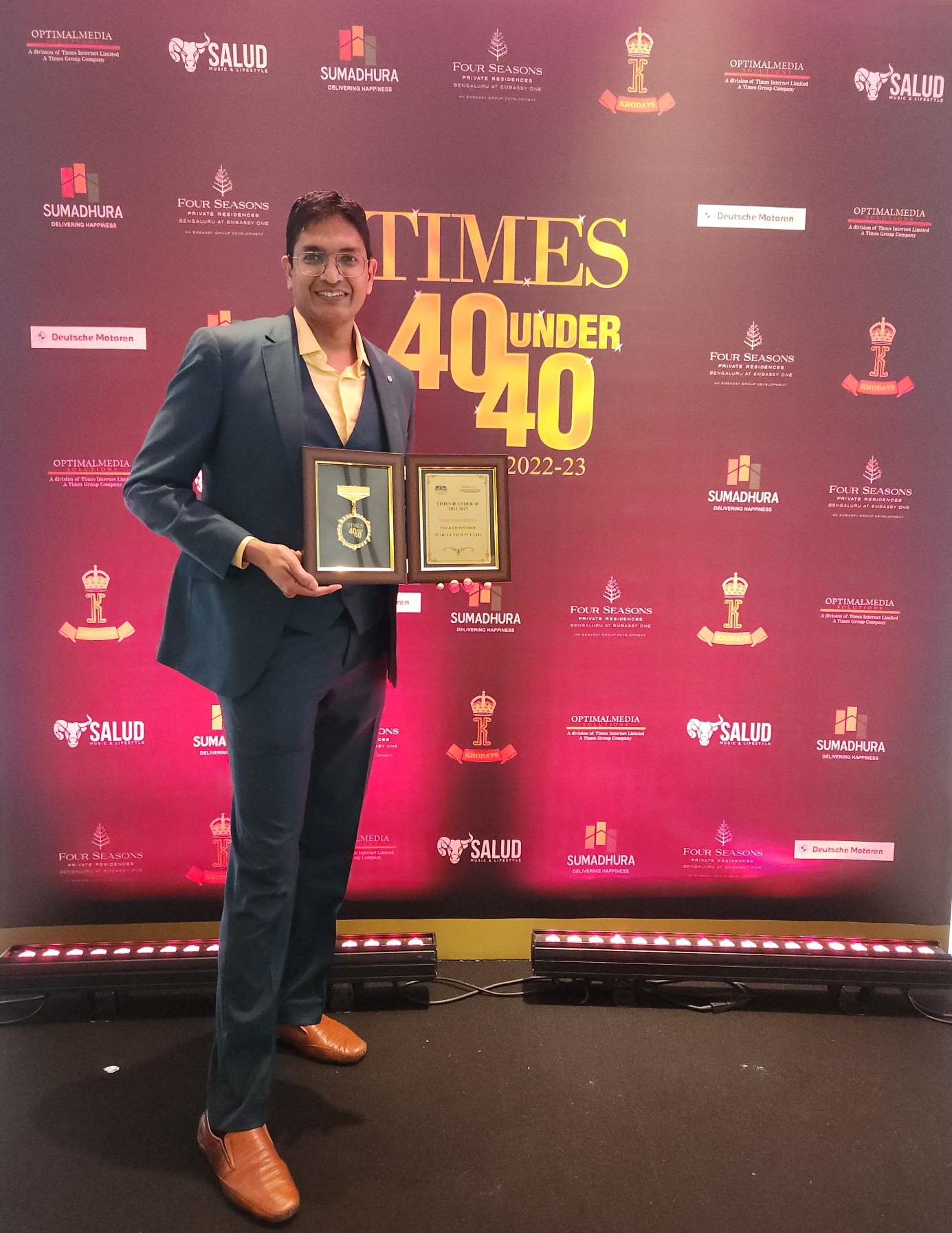 The Top 40 under 40 award from the Times of India recognizes individuals who have made significant achievements in their fields before the age of 40. It highly celebrates the spirit of entrepreneurship, inspiring young entrepreneurs to strive for excellence and create a lasting impact in their industries.